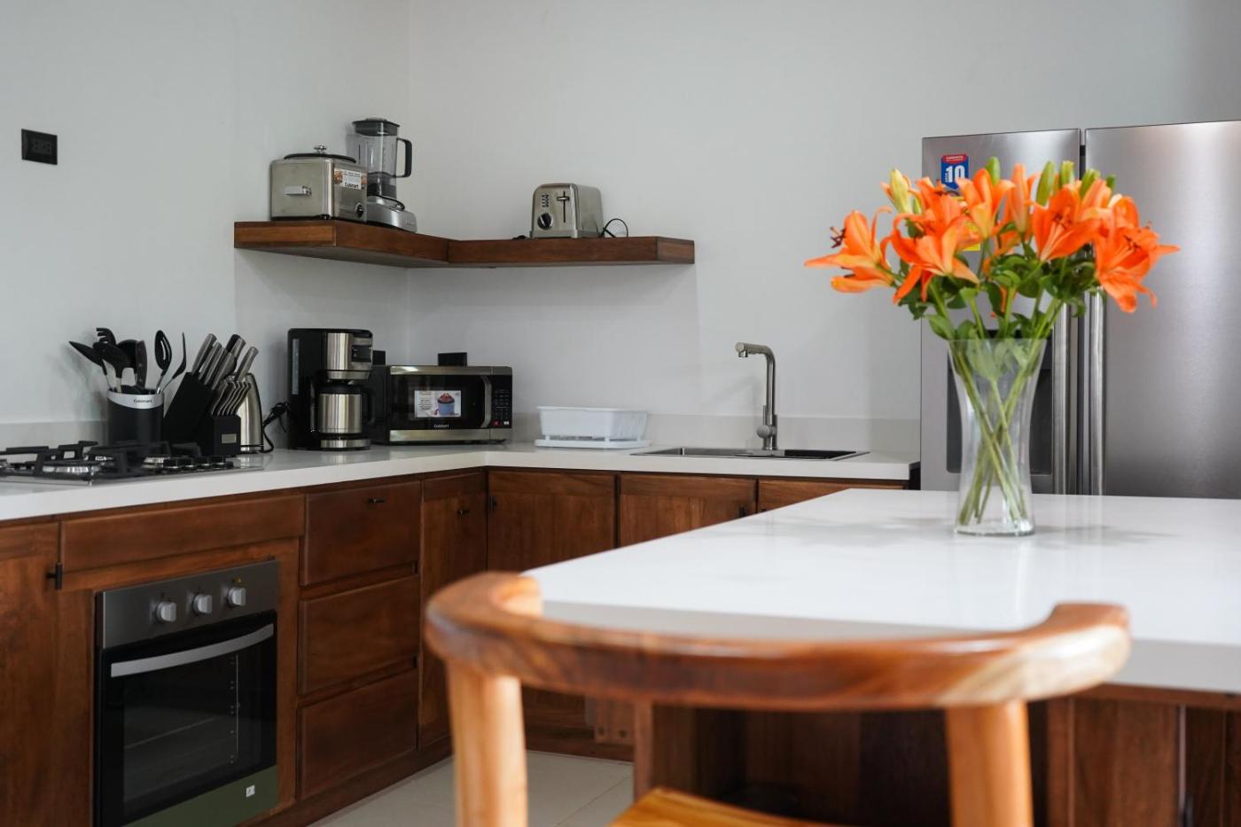 Two-Bedroom Villa. Featuring a private entrance, this air-conditioned villa consists of 1 living room, 2 separate bedrooms and 2 bathrooms with a shower and a hairdryer. Guests can make meals in the kitchen that is equipped with a stovetop, a refrigerator, kitchenware and an oven. The villa provides a flat-screen TV with streaming services, a washing machine, soundproof walls, a tea and coffee maker as well as garden views. The unit offers 2 beds.